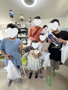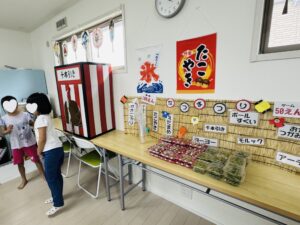 8月6日(水)、8月7日(木)の2日間 『親子で夏祭り』を開催しました!!昨年までは子どもたちと職員だけのイベントでしたが、 今年は、家族会も兼ねて、ご家族の皆さんにお声掛けさせていただきました♪ 想定していたよりもたくさんのご家族に参加いただき とっても賑やかな夏祭りとなりました!(^^)!